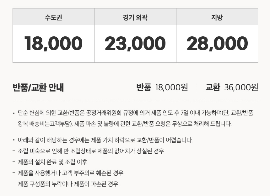 ¹è¼Û,¼³Ä¡ºñ¿ë Á÷Á¢ ¹è¼ÛÇϸç, Àü±¹(µµ¼­»ê°£/Á¦ÁÖµµ Á¦¿Ü) À¯·á¹è¼Û, ¹è¼Ûºñ´Â °³´ç ºÎ°úµË´Ï´Ù. ¼öµµ±Ç°ú ±× ¿Ü Áö¹æ Áö¿ª¿¡ µû¶ó ¹è¼Ûºñ°¡ ´Þ¶óÁú ¼ö ÀÖ½À´Ï´Ù. (»ó¼¼¼³¸í ÂüÁ¶)